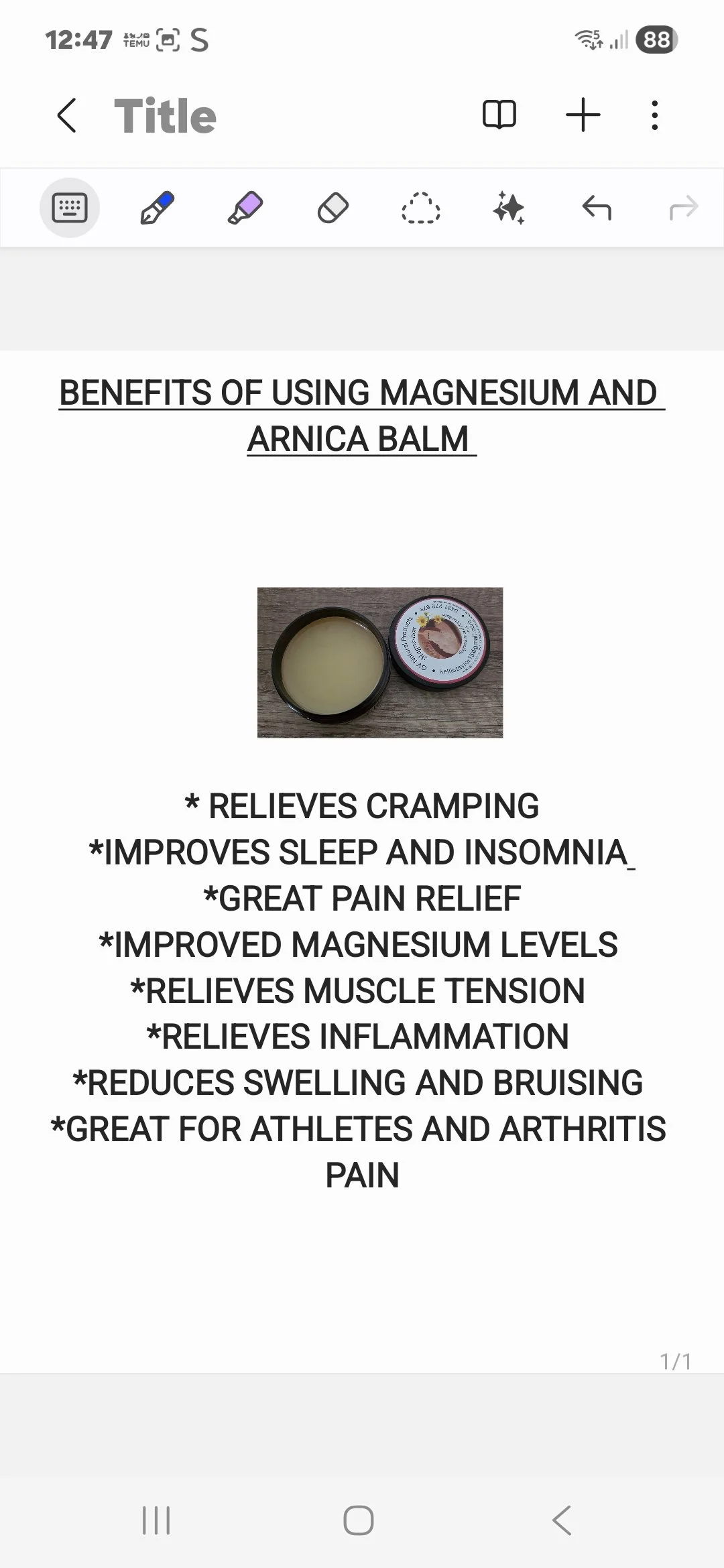 Magnesium and Arnica balm
